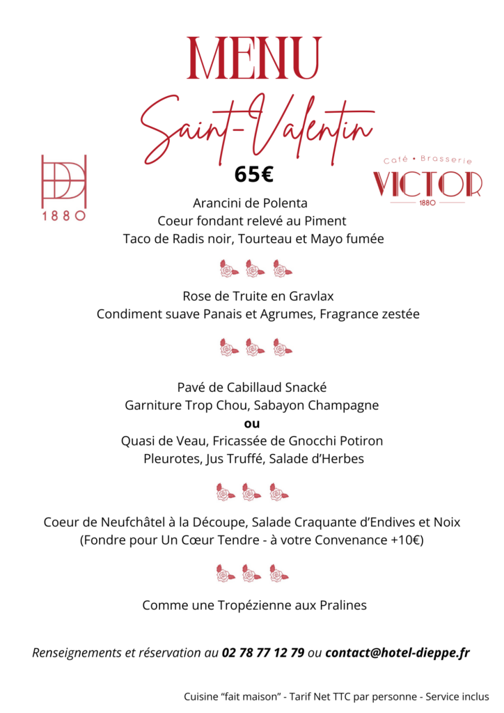 Menu Saint-Valentin : 65€ par personne (service inclus)